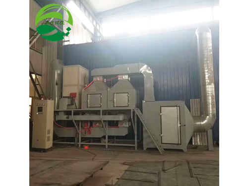 催化燃烧装置(RCO):首先通过除尘阻火系统,然后进入换热器,再送到加热室,使气体达到燃烧反应温度,再通过催化床的作用,使废气分解成二氧化碳和水,再进入换热器与低温气体进行热交换,使进入的气体温度升高达到反应温度。利用催化剂做中间体,使气体在较低的温度下,变成的水和二氧化碳气体。