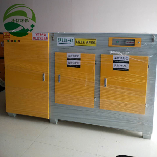 等离子光氧一体机是一种专门去除气体及恶臭气体的一种装置。是等离子分解废气净化器+UV光解除臭废气净化器两种设备的   结合,综合采用了等离子废气净化器和紫外光触媒除臭废气净化器两种设备的优点组合而成,利用等离子分解技术和UV紫外光解技术相结合,对废气和臭气进行   协同净化处理!